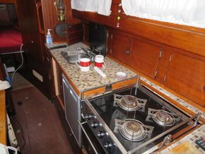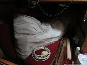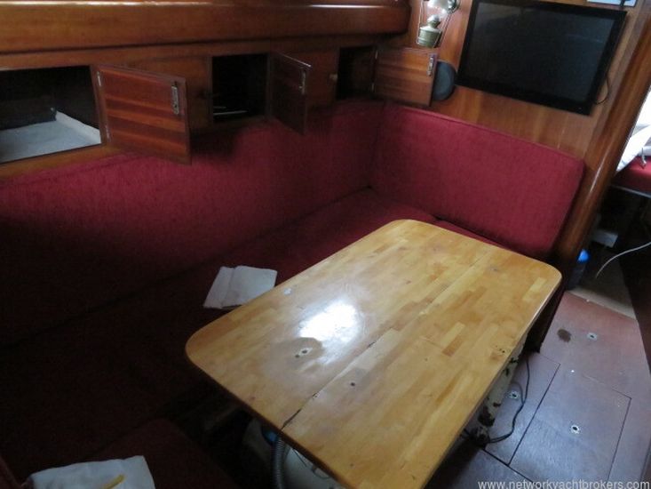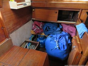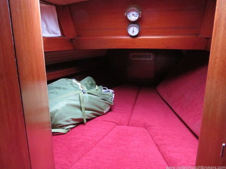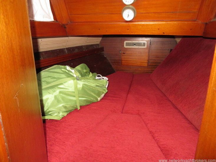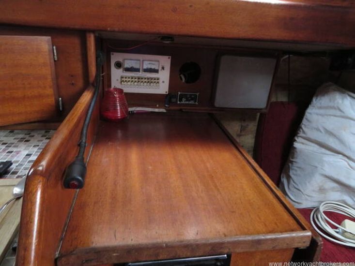 Aft of the Galley is the Navigation table which has an area for navigation instruments and navigation books etc. Aft of the Navigation table is a large quarter berth with opening hatch to the cockpit.